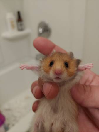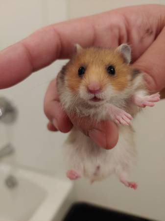 Baby hamsters available. About a few weeks old. Hamster babies are weaned from mothers milk & available for rehoming.