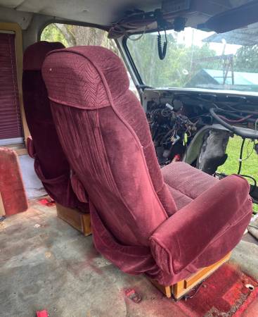 For Sale. Chevy Van G20 Conversion Front Captains Chairs with seat belts. Seats are out of 1991 Chevy Mark III Van. They are in nice shape. I’m asking $350.00 for both Captains Chairs and matching seat belts with the bolts. Please, message me if you have any questions. Thanks.