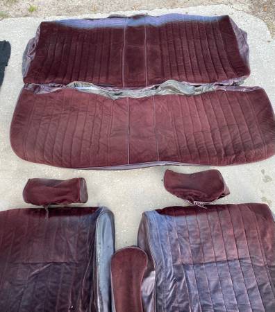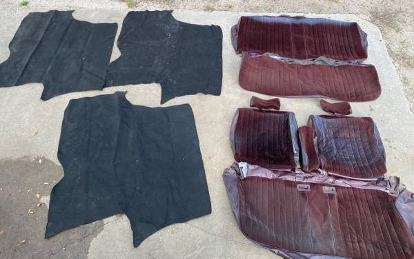 For Sale. 1978-88 Monte Carlo G Body Maroon Benchseat and Back seat upholstery, also three trunk floor mats. Seat upholstery is in good shape, has some sun fade. I’m asking $275.00 for the maroon interior pieces. I’m asking $25.00 a piece for the trunk floor mats. Please, message me if you have any questions. Thanks.