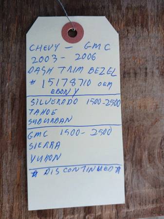 GMC chevy Tahoe Suburban yukon sierra silverado dash bezel trim plate, Seat, power seat, window, power motor, regulator, 3rd brake light, tail light, fender, hood, gauges, light switch, door switch, switch, rear seat, 3rd seat, pass door, cargo door, tire, wheels, hitch, bumper, wiper, headlight, AWD, 2wd, transmission, engine, motor, 4.8, 5.3, 6.0, 6.2, rear axel 4wd, 2wd, Escalade, Suburban, Silverado, GMC, Sierre, Yukon, Denali, short bed, crew cab, Tahoe, Hybrid, Chevy, Cadilliac, Turbo, Diesel, Duramax, LT, LS, shocks