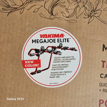 The "Yakima MegaJoe Elite" is a 3-bike trunk rack that features an easy installation with a quick-trigger hub and patented anti-sway cradles for secure transport. To check if it fits your specific vehicle, you must use the vehicle fit guide on yakima.com and search for the "SuperJoe Pro 3" model, as the MegaJoe Elite fits the same car types New in Box Never Used Still Wrapped Up. $ 75 Obo . show contact info
