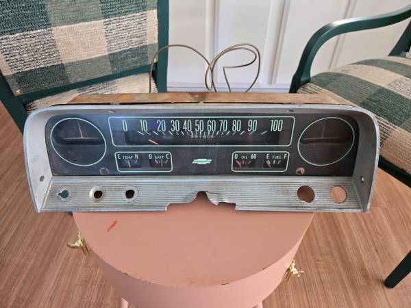 I have a 64-66 Chevrolet pickup instrument cluster and bezel for sale Odometer reads 55,000 miles ALSO HAVE MANY ORIGINAL PARTS FOR 64-66 C10 PICKUP 6 LUG BRAKE SPINDALS DRUM, HEATER BOX, 6 LUG...