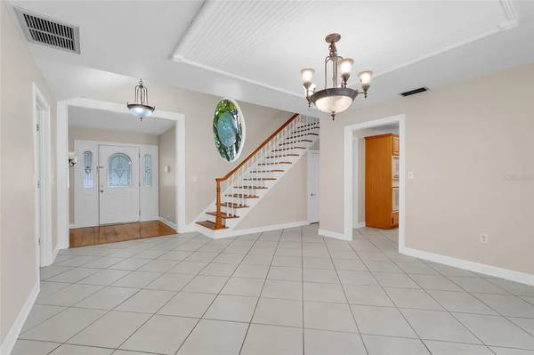 Set on a spacious 0.40-acre lot in the mature Regal Oak Shores community, this home offers room to spread out while still being just minutes from downtown Kissimmee. The stone front, shady trees, and paver walkway give it a welcoming feel, with a side-entry two-car garage tucked to the side. Inside, you’ll find a formal living room with built-ins, a comfortable family room, and a bright kitchen with wood cabinets, recessed lighting, and classic white appliances. The primary suite is located on the first floor and features dual sinks and a private water closet. Upstairs, two additional bedrooms share a full bath. Step out back to your oversized, tree-lined yard with patio and storage shed. Whether you dream of a garden, a play area, outdoor kitchen, or a peaceful retreat, there’s plenty of space here to bring your ideas to life. Conveniently located near US-192, the Turnpike, shopping, dining, medical centers, and Orlando attractions, this home is ready for you to make it your own.