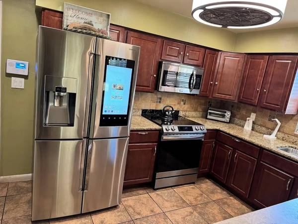 Prepare to be impressed with this lovely home in West Orlando. It's one of the nicest in the community and is nestled on a huge corner lot with mature landscaping. Inside the home you'll find a beautiful modern kitchen with granite countertops, newer stainless steel appliances and a Samsung 4-Door Flex French Door Refrigerator. In the kitchen there's also a stand alone island and wooden cabinets throughout. The home also has a dining room, a living room and a formal living room. With three bedrooms and two full bathrooms, there's plenty of room to relax. On the outside of the home you'll find an eight year old roof with owner owned solar panels that reduce the energy bill to less than fifty five dollars a month. There's also a three year old A/C unit, a six year old water heater and lighting around the perimeter of the home. With a large fenced back yard with a guava tree and a covered patio and sitting area, there's plenty of room to entertain family and friends.