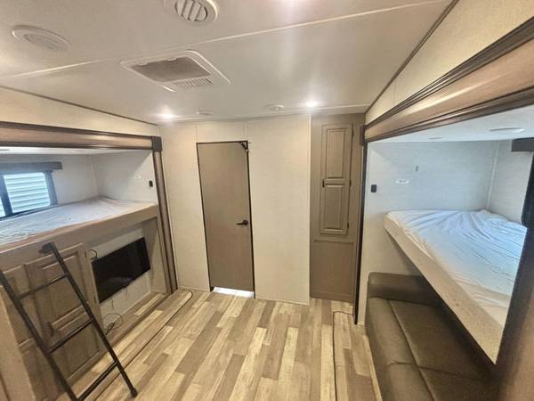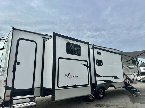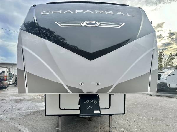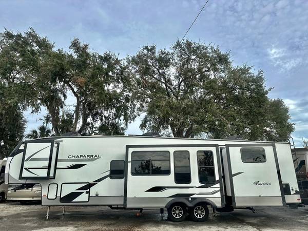 2023 Coachmen by Forest River Chaparral Fifth Wheel Series M-367 BH, 2 Bedroom 2 bathroom floorplan, 5 slideout’s, 42’6” total length, 3 air conditioning units, 2 entry doors, aluminum steps, large power awning, auto-leveling jacks, inside sleeps up to 10 people, rear private bunkhouse, full large rear bathroom, large living room, kitchen island, corian countertops, full size refrigerator, 3 burner stove with oven, microwave, lots of cabinet space, washer/dryer hookup, upstairs has another full bathroom, queen bed in master, all aluminum construction, priced to sell only $39,900 We Finance and take Trade-In’s, Delivery and Warranties available, call 863-450-2959 or 863-617-8406