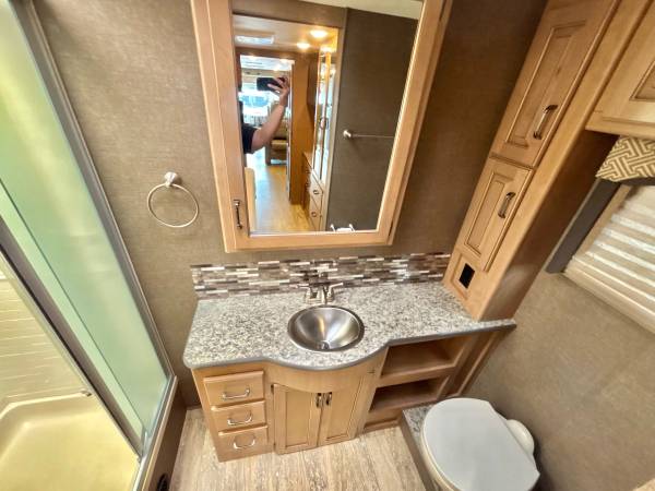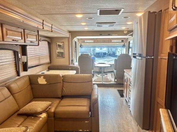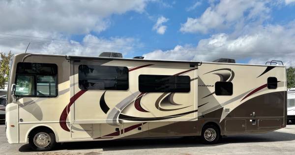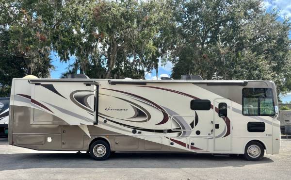 2018 Thor Motor Coach Hurricane Series M-35M, 2 slide-out’s, large power awning, slide topper awnings, ford 6.8L triton v-10 gas engine 362hp, 12,437 original miles, 36’9” total length, 80 gallon fuel tank, 2 13,500 btu air conditioning unit’s, Cummins onan 5500 generator with 984 hrs, auto-leveling jacks, tow package, inside sleeps up to 8 people, drop down queen bed over cab, queen bed in rear, fold down dinette booth, large full bathroom in the rear, 1/2 bath near living room, washer dryer hookup, large electric refrigerator, microwave, 3 burner stove with oven, only $49,900, We Fianance and take Trade-in’s, Delivery and Warranties available, call 863-450-2959!