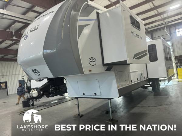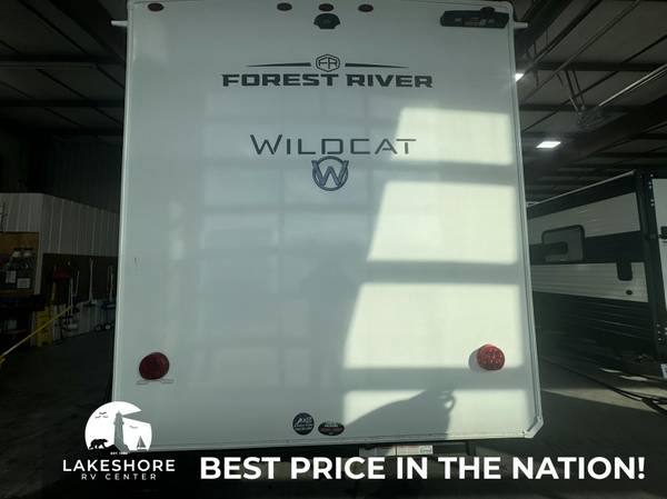 With any Wildcat fifth wheel by Forest River you will enjoy affordable luxury at every turn. These models are constructed with residential fiberglass insulation in the roof and floor, a sectioned ABS plastic underbelly armor, and a vacuum bonded, welded aluminum structure for added strength and durability. You will also find seamless roto-cast holding tanks, an outdoor shower, and 4-point auto leveling for quick and easy setup. Each model includes a best-in-class, high-efficiency 35,000 BTU furnace, along with a 18,000 BTU ducted A/C, with second and third A/C prep, plus an on-demand tankless water heater for added convenience. There are carpet-free living spaces, residential backsplash, motion lighting throughout, and many more comforts!