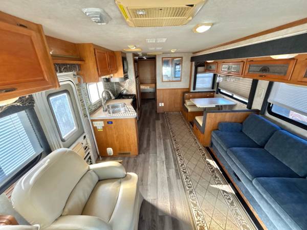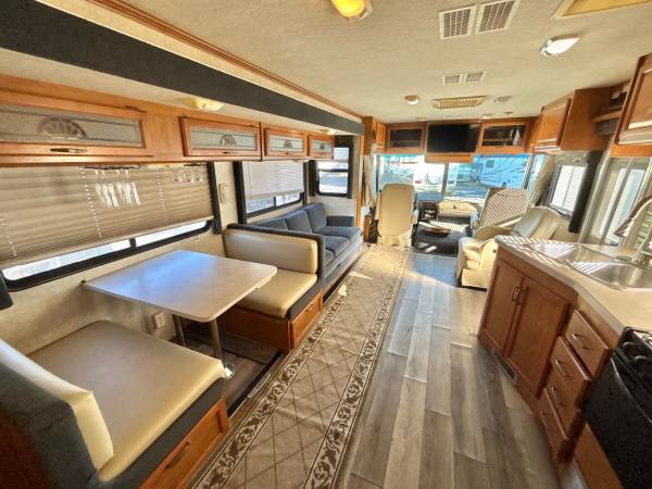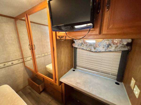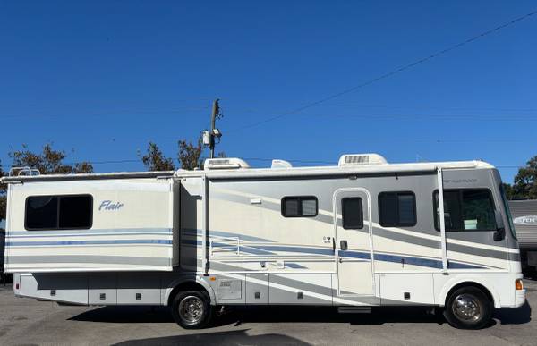 2006 Fleetwood Flair M-33R, 34’ total length, 2 slide-out’s, ford 6.8L V-10 gas engine, 136xxx original miles, new slide awning toppers, large manual awning, 2 air conditioning units, lots of basement storage, 5k lb tow package, 55 gallon gas tank, cummins onan generator, 6 gallon water heater, inside sleeps 6, queen bed in rear, stand up shower, dometic gas/electric refrigerator, 3 burner stove with oven, microwave, large flatscreen tv, fold down dinette, only $13,900 We deliver and take Trade-In’s, call 863-450-2959!