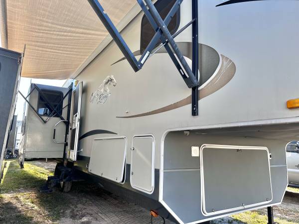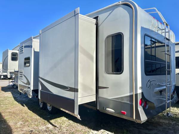 2010 Highland Ridge Open Range 385RLS, 4 slide-out’s, auto-leveling jacks, 2 air conditioning units, 1 large power awning, pass through storage compartment, inside has queen bed, fireplace, kitchen has corian countertops, kitchen island, stainless steel sink, residential refrigerator, 3 burner stove with oven, microwave, bathroom has large stand up shower, washer/dryer hookup, very clean unit, 10,560 lbs dry weight, 38’ total length, only $17,500 we finance, deliver and take trade-In’s, call 863-450-2959!