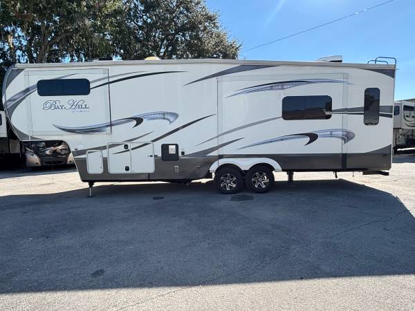 2016 Evergreen Bay Hill M-295RL, 3 slide-out’s, auto-leveling jacks, 2 air conditioning units, 1 large power awning, pass through storage compartment, inside has queen bed, 3 flatscreen tv’s, fireplace, kitchen has corian countertops, kitchen island, stainless steel sink, residential refrigerator, 3 burner stove with oven, microwave, bathroom has large stand up shower, washer/dryer hookup, 10,646 lbs dry weight, 35’ total length, only $24,900 we finance, deliver and take trade-In’s, call 863-450-2959!