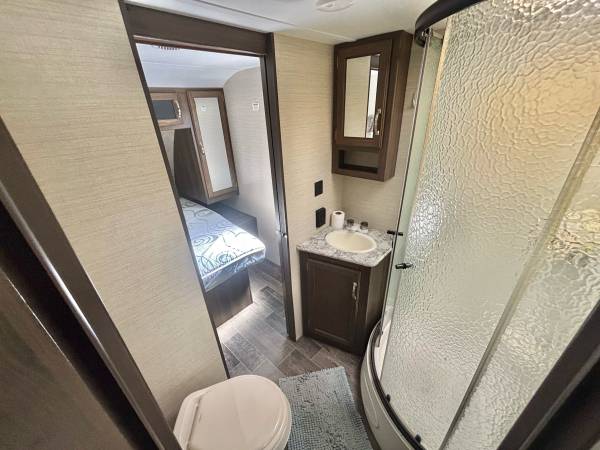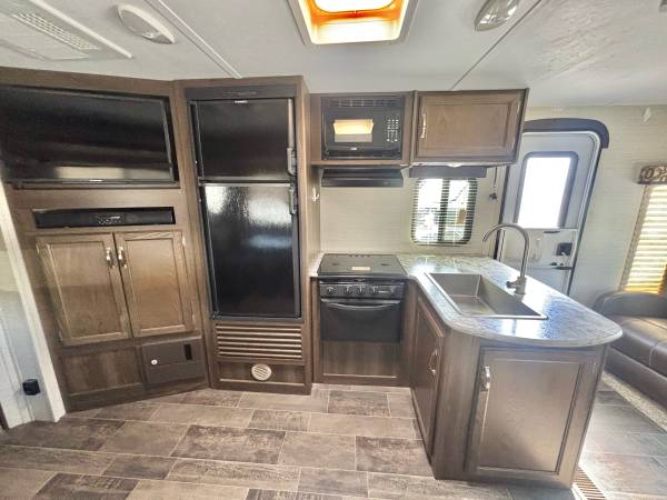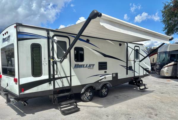 2018 Keystone Bullet M-269RLS, 31’ total length, 5,285 lbs. dry weight, 1 Slide Out, large power awning, 2 entry doors, sleeps up to 6 people, front queen sized bedroom, pass-thru storage, great tires, inside it’s very clean, full bath, microwave, mid sized gas/electric refrigerator, stainless steel sink ,3 burner stove with oven, 6 gal water heater, very nice unit, only $13,900 we finance, we deliver, and take trade-in’s, call 863-450-2959!