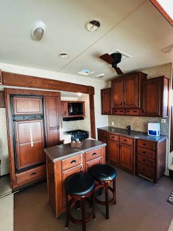 Selling my extremely well-kept 2013 Open Range fifth wheel, 38 feet long with 3 slide outs and dual A/C units that both work perfectly. This camper is in excellent condition inside and out — no leaks, no soft spots, no soft walls, no moldy smells, no smoking, no pets, and it has had a dehumidifier running since new, so everything has stayed dry and fresh.