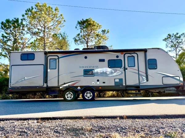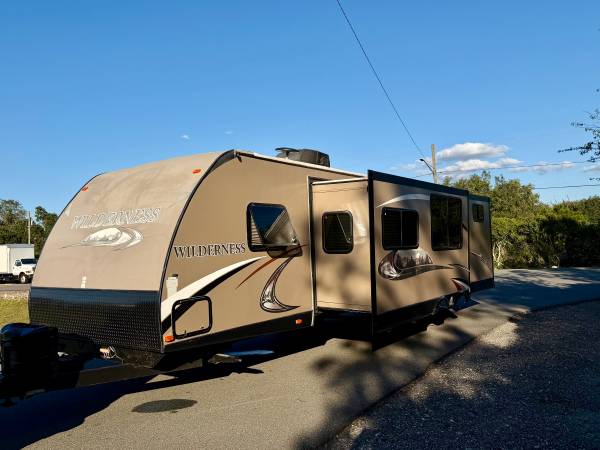 Hi up for sale. I have a 2013 Wilderness by Heartland. this unit is 33ft and weighs 6500 LBS. It has 2 slide outs and a full rear bunk room. in total It can sleep up to 9 people! at the front tip is the private bedroom with queen size mattress and 360° rotating TV. The living area has a sleeper dinette, sleeper couch and kitchen that has all you need to live. There is a private bathroom with rear exit door, sink and tub/shower. The exterior is equipped with an outside kitchen, full body electric awning no rips or tears passed through storage good tires and dual propane. please understand this unit does need some work and TLC! There is some soft spots and can use a good cleaning, But overall would make for a great fixer-upper. Clean title in hand! Please serious inquiries only ready to make a purchase. Asking $7800 cash only ! if the ad is still up, it’s available! If you’re expecting ready to go and New, please do not waste my time if interested contact me at (407) 902 1085
