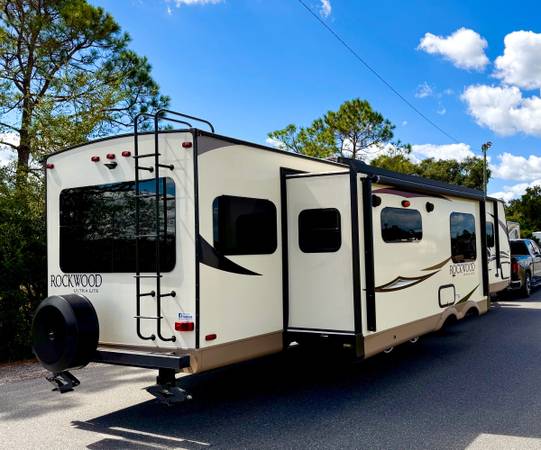 Hi up for sale I have a 2018 Forest River Rockwood. This unit is 34ft long has 3 slides and weigh 7KLBS. The rear living space has a very open floor plan with a full kitchen/entertainment&FirePlace slide, as well as a sleeper dinette and leather sofa Slide. on the back wall is also a sleeper couch so in total this Can sleep up to 6. At the front is the private bedroom with queen size mattress, and a wardrobe closet slide and there is dual entry to the large bathroom with full standup shower. overall, this unit is an excellent shape it is very clean! non-smoker or pet owner. No leaks AC blows cold! It’s perfect for a family looking to travel or live. The exterior is equipped with two electric awnings, solar power hook up all seasons package,seamless windows, TV mount and good tires. Clean FL title in hand NADA values 19-23K I am only asking $14,900 cash only serious inquiries only READY to make a purchase if interested contact me at (407) 837-0552 thanks