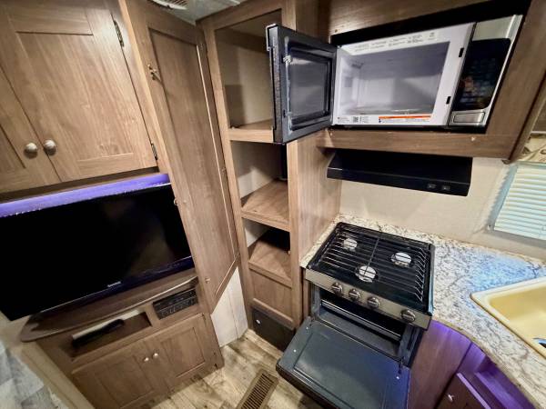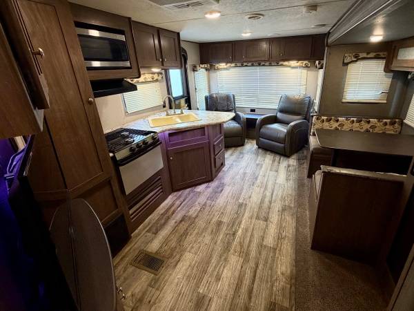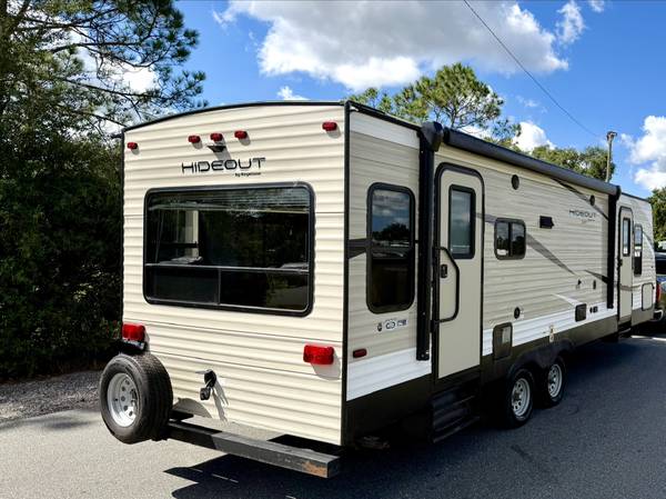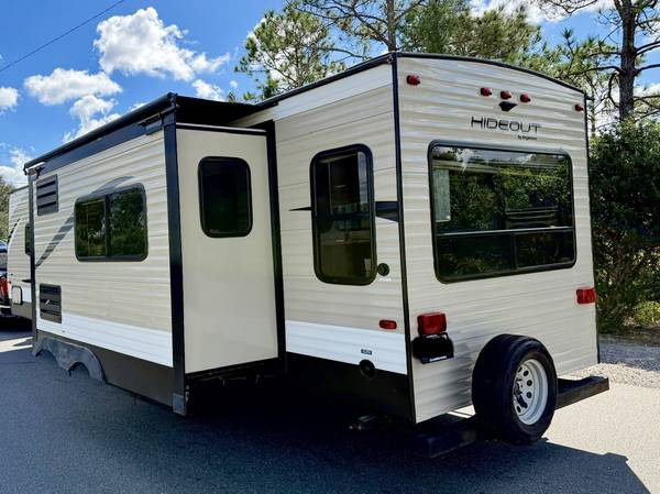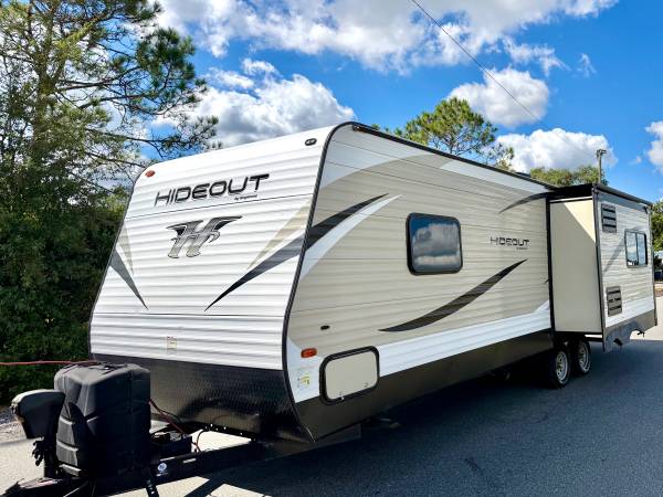 Hi up for sale I have a 2019 Keystone Hideout LHS. This unit is 28Ft long with a Slide out. This camper is perfect for a couple looking to travel with ease. It’s very compact, but has everything you need to live comfortable. The living and kitchen area has a sleeper dinette refrigerator, recliners and a full equipped kitchen. There’s also a small entertainment section with TV. There is a good amount of cabinetry throughout. At the rear is the private bedroom with queen size mattress and second entry door. AC blows cold, all plumbing and appliances in working order no leaks, no odors. The exterior is equipped with a full body electric awning,Slide awning,electric jack, cold Mountain package, outside speakers, comes with hitch and good tires. Clean title in hand please serious inquiries only READY to make a purchase asking $9900, Cash Only! if interested contact 407 902 1085