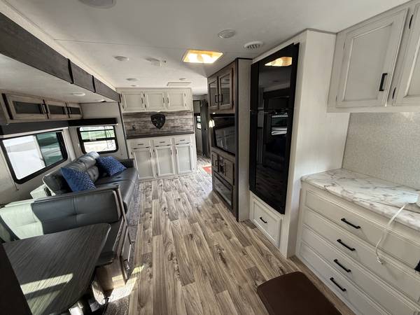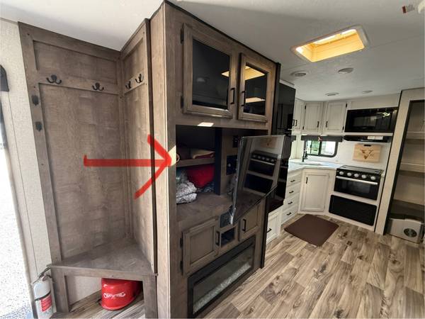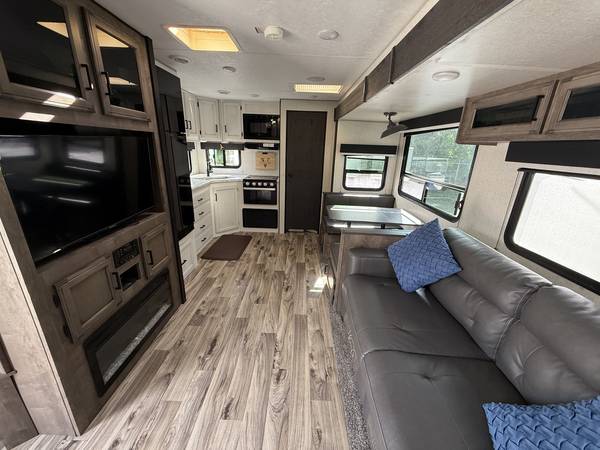 Highlights: May of 2025 we installed 4 new tires and battery. Fireplace, Rear Kitchen with large counter space, walk-in pantry, outside kitchen, loads of storage, backup camera and Huskey sway bar/tow hitch. One owner - purchased in 2023