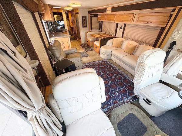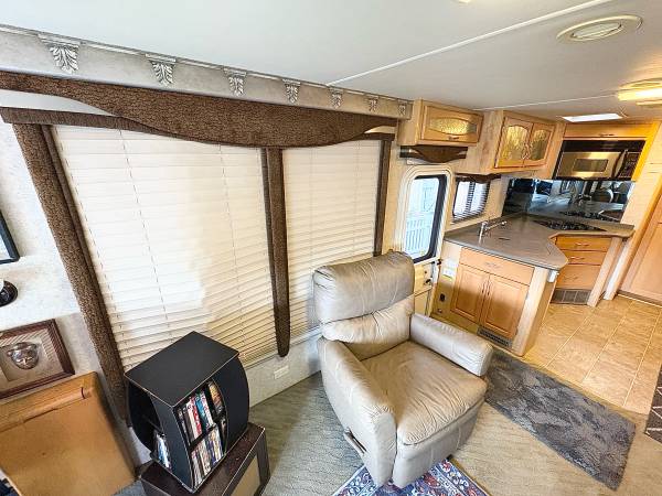Hello, I am selling my 2003 Fleetwood 37a model 38 foot It has two slide outs electric awning also has awning over every window 5500 W generator work horse chassis Allison transmission, power leveling jacks  two roof air conditioners cab air back up camera electric heated mirrors, power step fantastic fans, washer, dryer combo double door refrigerator ice maker recliner chair granite countertops microwave convention oven booth dinette  all leather interior power captain chair queen size bedroom  full-size shower with tub  day and night shades full wardrobe closet vanity area motion satellite system flatscreen TV can sleep up to six people drivers door entry  everything in good working condition good condition inside and out good tires no leaks no soft spots  mileage  30,000  this is a luxury coach with everything you could ask for serious cash buyers only no emails call 352-988-4150