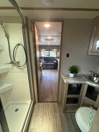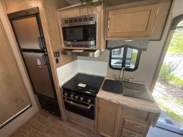 Lite FIFTH WHEEL! 26ft & 5,640 easy to transport! Great for vacation home or live in. Rv tech inspected everything in working order. Sleeps 3.