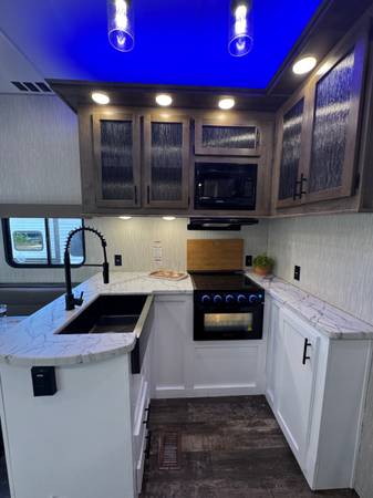 Amazing 2021 Forest River Cherokee Wolf Pack 365 Toy Hauler/5th wheel! 43ft & 12,333lbs. Comes with a Cummins 5500 Generator that has barely been used. WASHER/DRYER Hookups!! 2 Bathrooms!! This toy hauler has it all, versatility with practical living amenities and tons of storage ideal outdoor enthusiasts who need to haul gear and still enjoy modern features. 2 slide-outs that expand the living area! Well-equipped kitchen and bath. Loft bunk area and back sleeper sofa in rear cabin. Private king bedroom. Can help deliver call or text Bridget to view 407-473-9311 no added fees just unit cost plus tax, cash discounts. Comes with new bedding and flat screens!