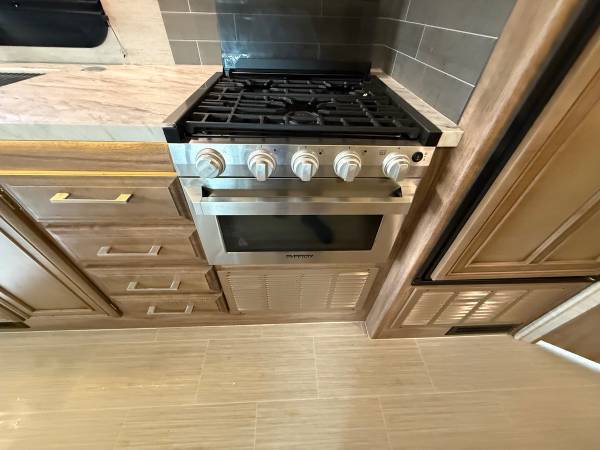 Gas generator, air conditioning, heater, full galley with microwave / convection combo, oven, three burner stove and large refrigerator / freezer.