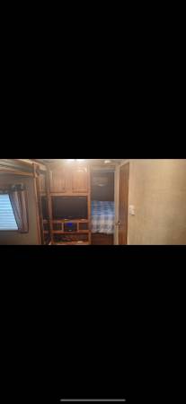 26 feet long, big electric slide out, automatic awning, air conditioner, furnace, built in TV that turns around into bedroom, fridge, stove/oven, built in microwave, automatic hot water heater.