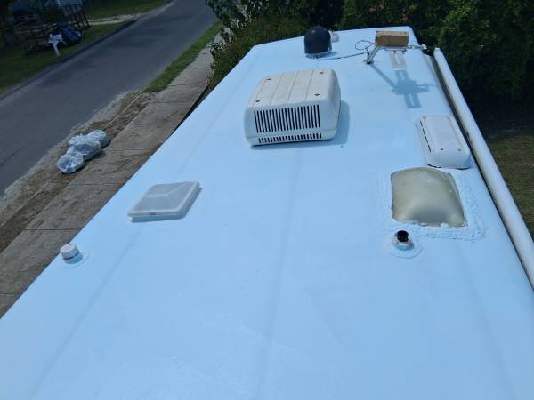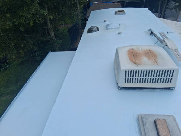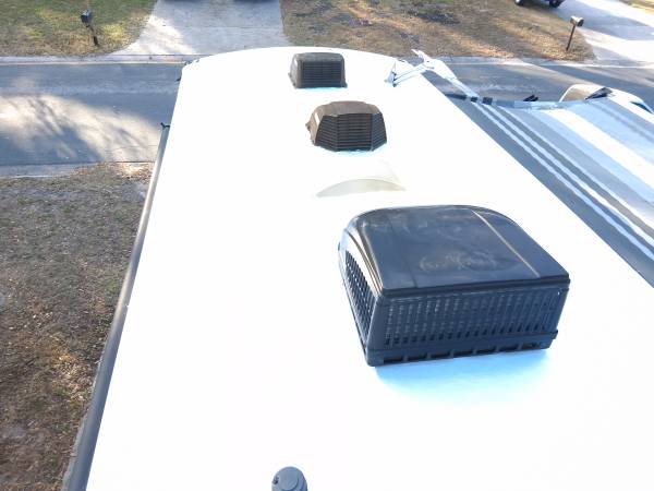 > Bright white, Reflects 85% of the sun's heat, helps cool your rv and lowers the load on your ac.