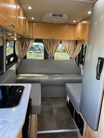 The van is built on the Ram Promaster 3500 chassis with a 3.6L gas engine that runs smooth and has been well cared for. It’s easy to drive, fits in a regular parking space, and has everything you need on board.