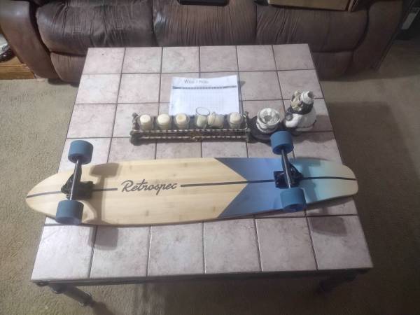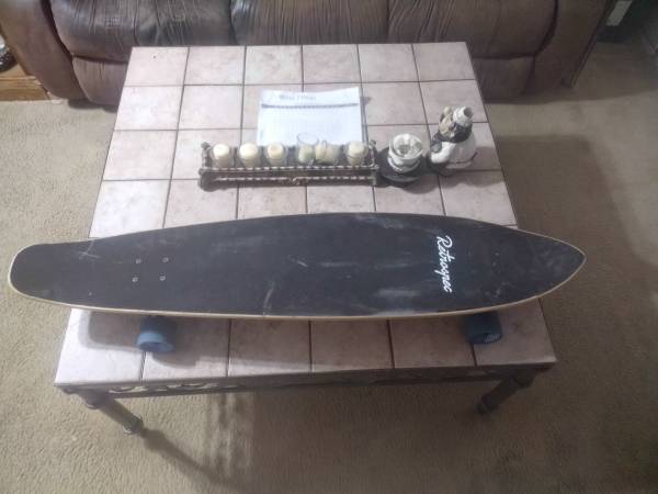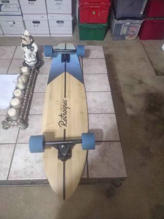 LONGBOARD RETROSPEC 44 INCHES LONG 9 1/2 INCHES WIDE WHEELS 2 INCH GREAT SHAPE READY TO RIDE