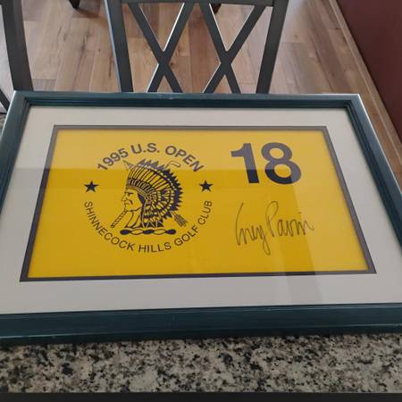 COREY PAVIN GOLF AUTOGRAPHED 1995 U.S.OPEN WINNER FLAG FRAMED & MATTED SHINNECOCK HILLS GOLF CLUB...FRAME HAS A FEW SCRATCHES. NO C.O.A. THANK YOU FOR LOOKING...HAVE THE BEST DAY....OR TRADE FOR...