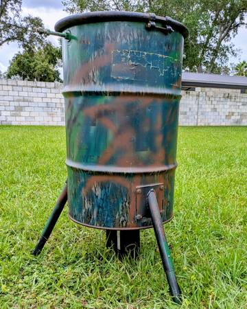 This is a 30-gallon, metal/steel drum Moultrie game feeder Very heavy-duty & holds 300# of feed, in excellent shape and built to last a long time Included are 6’ collapsible tripod legs, or it’s...