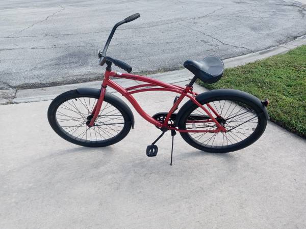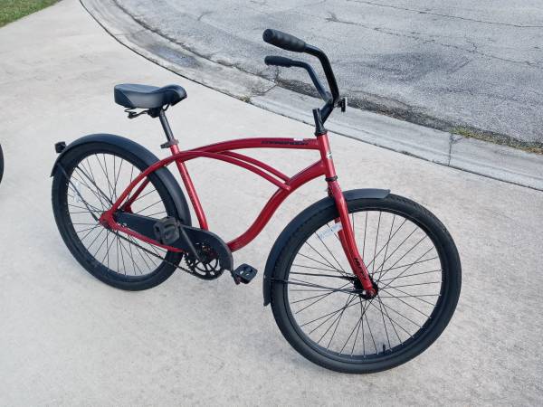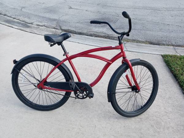 Huffy Cranbrook Adult Men's Cruiser Bike, 26" Wheels, Comfort Saddle, Red -Lightweight aluminum frame -Hi-Tensile steel fork -Coaster brakes - simple pedal backwards -26" Cruiser tires -Adjustable...