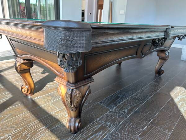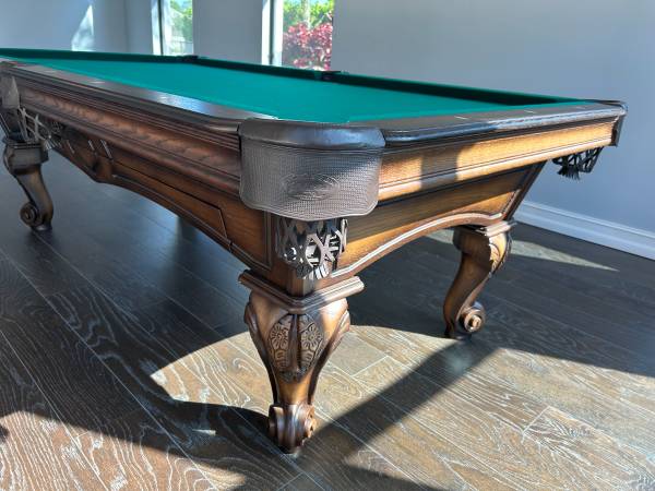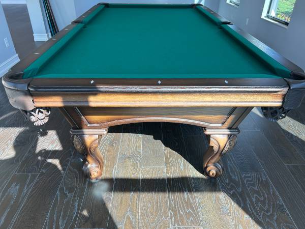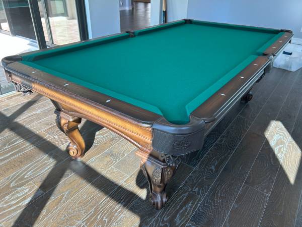 I have an awesome 8 ft. Olhausen slate pool table for sale. This is a 3-piece, 1 inch slate table with Olhausen embossed leather drop pockets. The table is in immaculate like new condition. New Andy speed cloth is also included, you can pick the color.