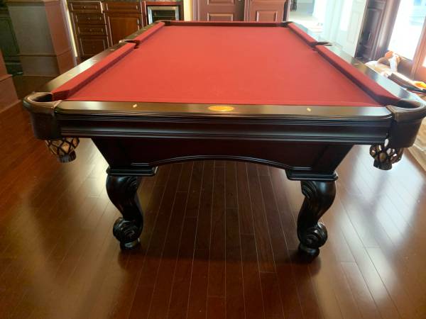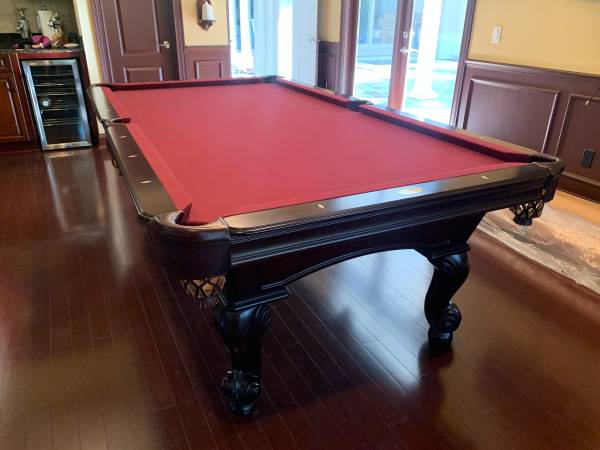 I have an awesome 8 ft. Olhausen "Santa Ana" slate pool table for sale. This is a 3-piece, 1 inch slate table with Olhausen embossed leather drop pockets in EXCELLENT CONDITION! There is not a scratch on the rails, They have been professionally refinished. New Andy speed cloth is also included, you can pick the color.