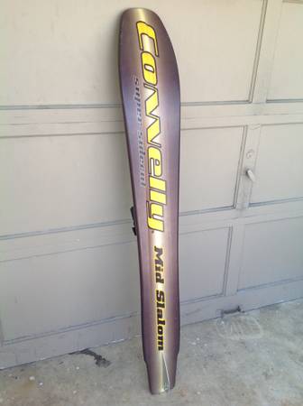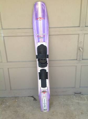 purple water ski by Connelly, Super Sidecut Mid LX, mid slalom ALT series, cam adjustable s and rear toe plate s, 400 sq. in., metal fin, rubber and board are in good shape