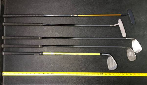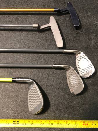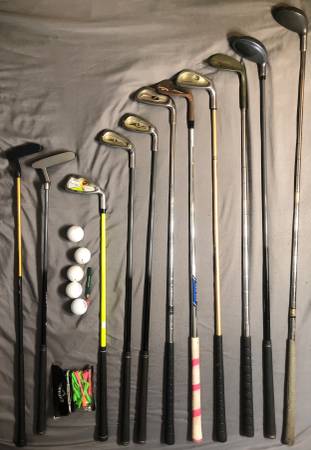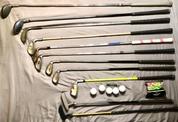 Golfing Set with Golf Clubs, Bag, Tees, and Golf Balls. -10 Golf Clubs (small) -New Golf Tees -5 Golf Balls $25 for all. 10 Golf clubs: -9/P Tour Logic Junior Graphite -P Accu Length 3000 -7 Accu...