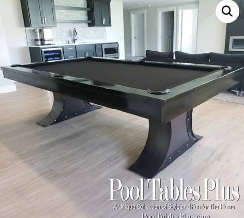 Selling our 8′ Xane Steel Industrial Pool Table as we are moving offices and cant take it with us. We love this table though and it is in like-new condition. Located in our office in downtown Orlando, it is very heavy (875 lbs assembled) so will likely require professional disassembly, moving and re-assembly. Comes with balls, cues, wall rack and some accessories. The 2 images with watermarks are stock images and then the others are the actual table in our office and you can see it is in great shape and looks the same as the brand new table.