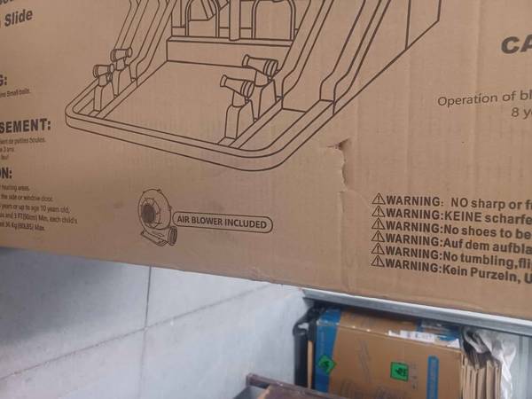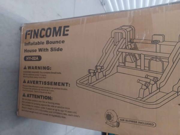 FINCOME Inflatable Bounce House for Kids, Water Bounce House with Double Slides Outdoor Indoor, The inflated size is 15 ft L x 14 ft W x 8 ft H., features double water slides with sprinkler, a jumping area, climbing wall, basketball hoop, 4 water-spraying cannons and a large water pool