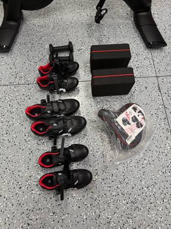 Perfect condition. Not a single scratch. Comes with the weights, yoga blocks, floor mat, 3 pairs of shoes (2 women's size 8 and 9 and a men's 11). $500