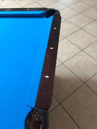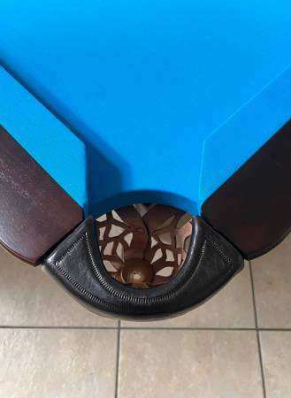 This table has upgraded Championship Tour Edition Championship Blue cloth on it that is in excellent condition. We can restretch this cloth back on the table during install. If you’d like to change the color of the cloth I do stock Andy Cloth, which is another manufacture of upgraded worsted speed cloth. There will be an upcharge for Andy Cloth. See the last picture for the available color options.