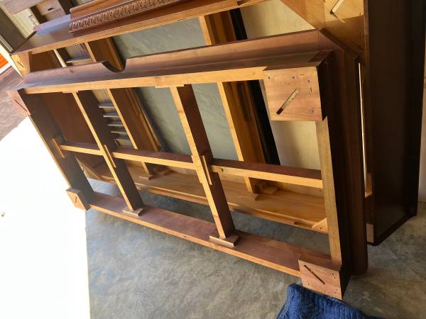 I purchased this table disassembled but attached pictures of a couple of the rails, sideboards of the rails, frame, legs, and pockets.
