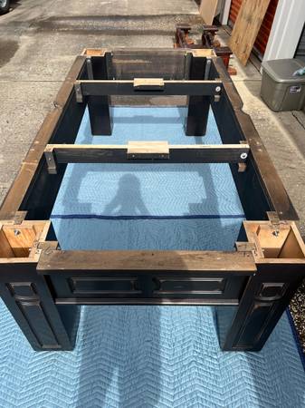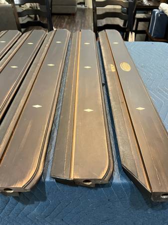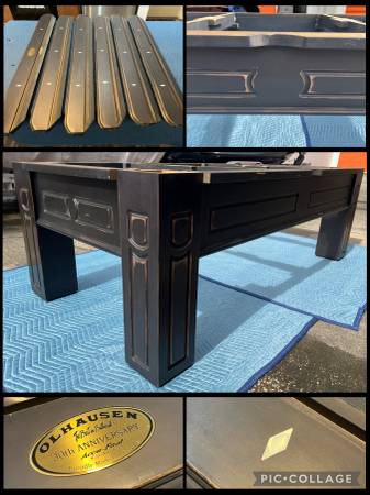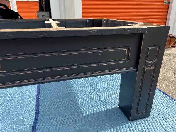 ***You will see a stock photo of the table posted with burgundy cloth. The sole purpose of this stock photo is to give you an idea of what the table looks like assembled. I posted many pictures of the actual rails and rail sideboards so you can see condition and the matte graphite stain. I’ll be posting more pics of the frame, slate, and pockets in the coming days***