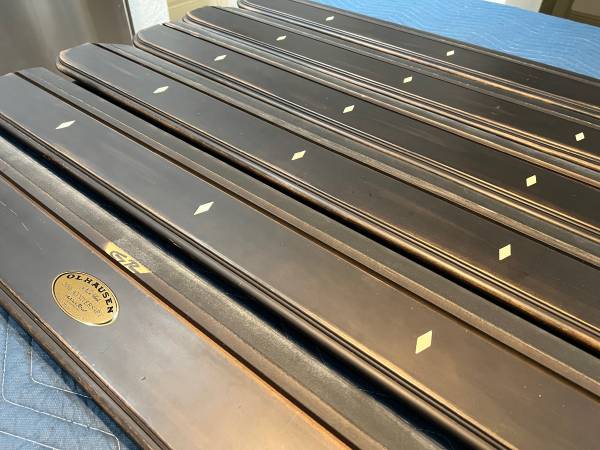 -finish: matte graphite on maple with distressing (areas of wear are intentionally done from Olhausen factory)