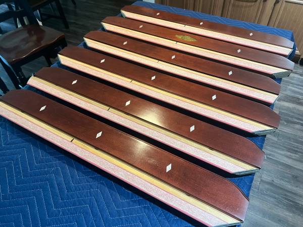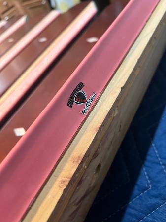 As mentioned earlier I just installed brand new Championship rubber cushions on this table…rest assured the rails will be active for many years to come. This table needs new cloth. I have new upgraded Andy Cloth “600 Club” speed cloth in stock. This is a worsted cloth that will play nice and fast. There are 10 color options to choose from, see last picture.