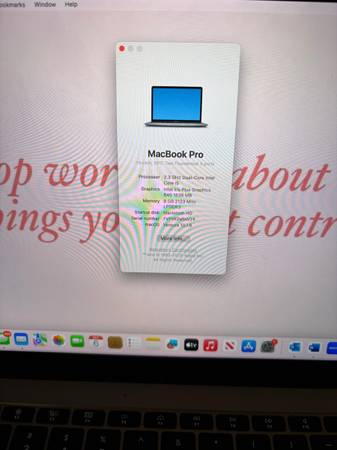 2017 MacBook Pro In great condition, I just upgraded. I had the battery replaced last year so battery life is still good. Will have it factory reset so you can log in. $160