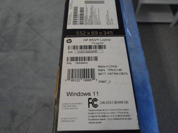 H.P. Envey 17 Laptop. Windows 11 Pro, 32 G.B, Intel core i7, Intel Isises , Graphics, Back light keyboard. S.D card. I have the Box , charger and all paper work From H.P. Email me at show contact info