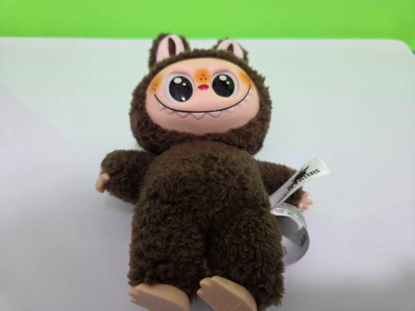 This is a Lafufu keychain plush action figure. Lafufus are inspired by Labubus. This Lafufu is based on the Labubu Chestnut Cocoa from the Big Into Energy Series. It does not come with the original box or bag. There is a keyring so that it can be worn on a backpack or attached to a set of keys. The Lafufu measures approximately 7 inches tall. Please Note: This IS NOT a Labubu.