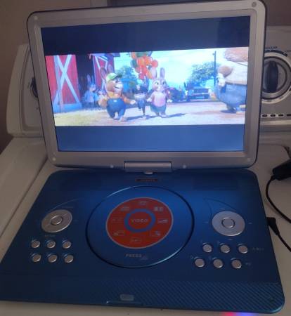 16.9" Portable Mobile DVD Player with 14.1" Swivel Screen with 6 Hrs. Rechargeable Battery Great For Kids and Everyone Color Blue Pickup Cash Only Thanks