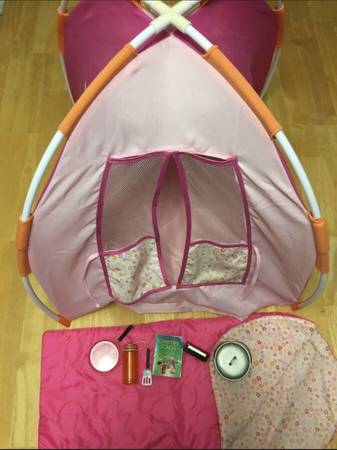 Our Generation Pink Camping Set For 18” dolls Included tent, sleeping bag, song book, harmonica, pot, pan, ladle, & spatula Fits American Girl, Our Generation, My Life Dolls If you see this...