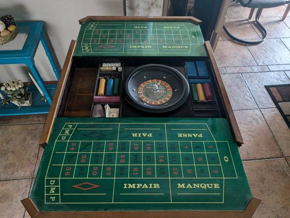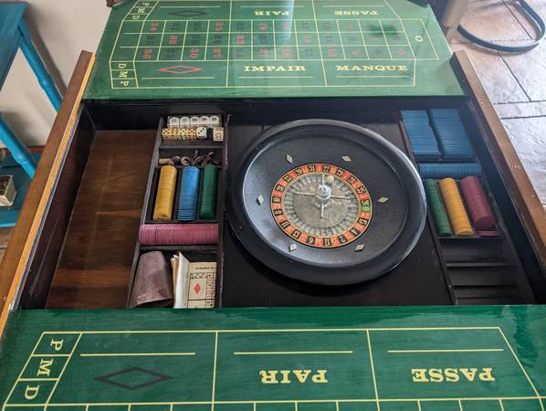 This is a multiple game table. In good condition. Over 50 years old. One of a kind. Text Best offer.