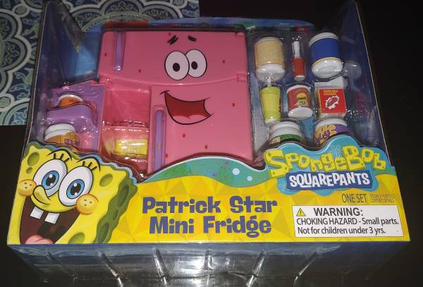 Nickelodeon SpongeBob SquarePants Patrick Star Mini Fridge & SpongeBob Foods Pick Up Cash Only Thank You